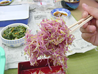 ![]() | 菊の花。東京で菊の花というと、ちょこっとだけ食べる感じですが、こちらではもりもり食べます。 |