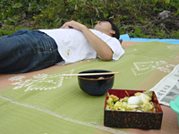 林道でござを広げてランチしてお昼寝 | ( 撮影・画像加工・文章・編集:貴山敬 ) |