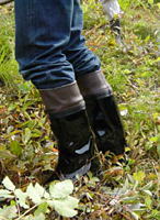 ![]() | 山元林業組合でお借りしたゴム靴。ゴム靴なんて履くのは雨の日の小学校以来ですが、この長靴は、①ゴムの強度が強い、②上についているゴムが雨雪や草木が靴の中に入るのを防いでくれる事に加えて、 |