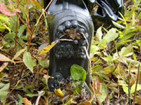 ![]() | なんと③スパイク付き!。作業をする斜面では、石があったり、太い枝の切り口が飛び出していたりと、スニーカーでは危ない事がよくわかりました。 |