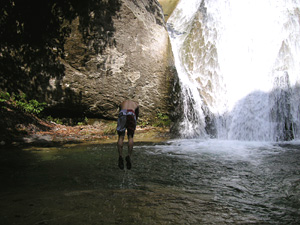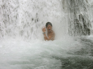![]() | 萱滝に飛び込む。真夏といえども、かなり冷たい! |