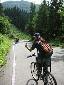 気温は30度ぐらいで、晴れた空とそよ風、最高のサイクリング日和。 上山のサイクリングコースとして、今回が、過去4年間の私の上山訪問の集大成だったと思います。 もうちょっと横道に入るとか、他にも訪れたい場所とかありますが、1日にまとめようとするとこれしかない。 上山の、歴史と人と自然を五感で感じるサイクリング。 帰りの最高の爽快感は、行きの上り道の苦労があってこそ。 私の上山への想いがつまっています。 今回はあまり写真を撮らなかったので、過去の写真のリンクとともに、コースを紹介します。 駅前の「カガミサイクル」で自転車を借りる ↓ 「カガミサイクル」の近くで、小さな神社を窓から覗く。不動稲荷神社 兼 古峰神社。隣は普通の家。 2005年7月の回 ↓ スーパー農道をひたすらゆっくりとお話しながらのぼっていく。 ↓ 姥懐のオープンカフェでソフトクリーム+美味しい水 2003年6月の回 ↓ 楢下の古民家にちょこっと寄る。大黒屋。 2003年1月の回 ↓ 大門を少し過ぎた坂の途中で小さな神社 2004年4月の回 ↓ 古屋敷の家の裏の沢でちょっと足を冷やす 2003年10月の回 ↓ 古屋敷村の昔の墓を見る (道路が開通すると村は過疎になる可能性が高まります。便利になったはずが、逆にふもとの便利さに惹かれて山を降りてしまうのです。山を降りるときに、お墓も一緒にもっていきますが、無縁仏の墓だけが残るんですね) 2004年4月の回 ↓ 自転車を降りて沢のぼりスタート 2004年8月の回 ↓ 萱滝にダイブ+スイカ (ここで何か食べるのがポイント。おなかペコペコになっちゃうので) ↓ 一気に下り ↓ 牧野(マギノ)の小さい神社。萱滝の近くの神社と同じ神様が祀られていることに気がつきます。 2004年11月の回 ↓ 帰り道の途中で、原口そば。 2003年7月の回 ↓ スーパー農道を、ペダルをこがずにゆっくりと下り ↓ 宿でひとっ風呂浴びて終わり! |