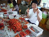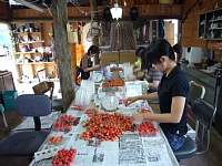 ![]() | Mサイズ、Lサイズ、LLサイズ、と手作業で選別します。 |
