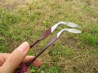 ![]() | このピンセットをつかって、粒を間引いて姿をととのえます。密集してると大きくなったときに破裂してしまうそう |