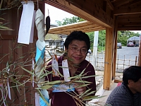 ![]() | 武家屋敷の一角でお休み処を発見。七夕の時期だったので、みんなで短冊に願い事を書きました なにを書いたかな? |