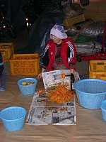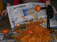 山形名産紅柿の実演をしてました。 ひとつひとつ皮をむくのはたいへんです |