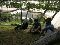 ぶどうの木のしたでひと休み 日陰になってるとそよ風が気持ちいい |