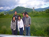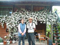 | お世話になった吉田さんご夫妻。 満開のクレマチスが風にゆられてとてもきれい。 |
