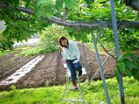 | はしごに登ってチョキチョキします |