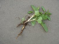 畑の雑草で根っこをしっかり取らないとすぐ生えちゃうそう ゴボウばりの根っこなり |