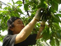 ![]() | 秋葉さんから作業の仕方をレクチャー 品種は“ナポレオン”(佐藤錦じゃないよ) シロップ漬けでお馴染みですね |