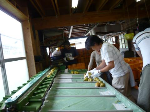 選果機に合わせて仕分ける作業はフレンドパークの アトラクションのような体力&スリルが味わえます。 |