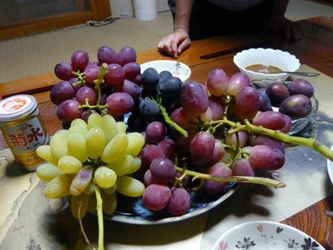 夕食にはぶどうの盛り合わせ。