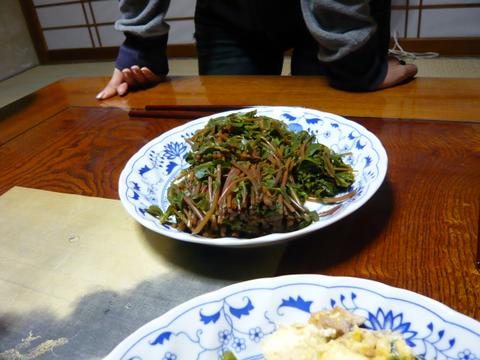 | 先ほど畑でとってきた“ひょう”もこんな姿に。これが絶品。 |