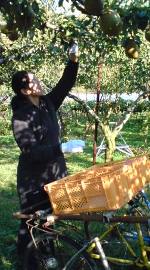 <収穫作業>→→→とにかくひたすらもぎもぎの巻 | ( 撮影:真野秀太 & chicaco 文章・編集:chicaco ) |