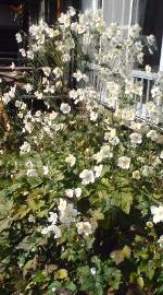 早起きして散歩する静けさの中に ひっそり佇んでいました。 シュウメイギク(右): 吉田さんのお庭にはたくさんの 花々が咲き乱れ、ブルーベリー なども栽培されていました。 今はもう無い祖父母の庭と畑が 何だか懐かしくなりました。 |