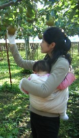 お・お・き・い~重さでいうと500グラムとか。 こんなのスーパーで見たこと無いサイズ! 聞けば今年は大きいものが多いとのことでした。 吉田さんご自慢の新兵器(収穫作業写真参照↓↓↓)で肩も腰も痛めることなく、 談笑を交え、和やかにもぎもぎ摘果作業。 |