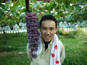 頂きました。難しい品種でも 果敢にトライしてるとのことで、 その豊富な種類に目を見張り、 舌鼓を打ちました。 顔より大きい! ブドウとは思えないほど驚異的に 重かったです。 |