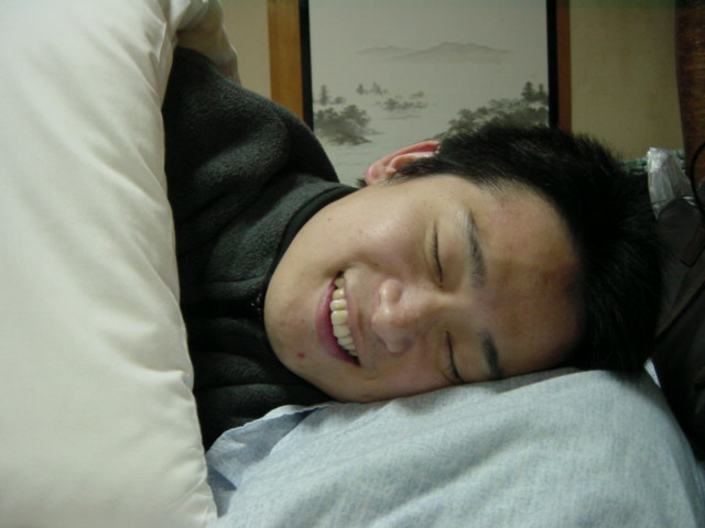 干柿班の彼は着いた途端に笑顔で寝てました。