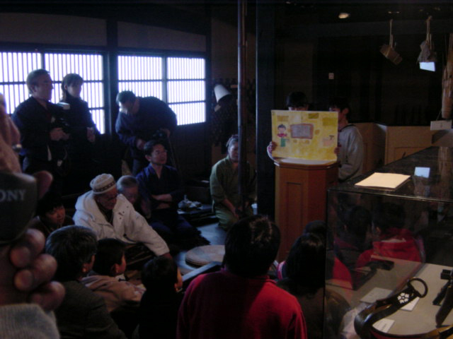 ![]() | お昼を食べた後、楢下宿の古い民家で行われた「昔語りの集い」に行ってきました。老若男女あわせて総勢20人ぐらいの方々が、かわるがわる山形に伝わる昔話を話していきます。雰囲気は詩の朗読会に近いでしょうか。参加した小学生にとっては学芸会のようなもののようです。 |