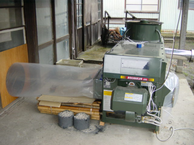 ![]() | しばらく外干しした後、乾燥室で本格干しへ。 乾燥機で室内に温風を吹き込みます。 |