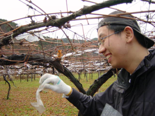 果樹園に行ってバンシャット外し作業 | ( 撮影・画像加工・文章・編集:貴山敬 ) |