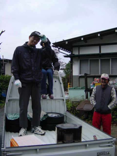 ![]() | 果樹園は吉田さん宅から車で5分程度。軽トラックに乗って出発です。 |