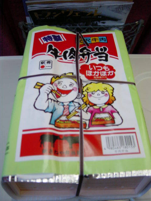 来る時の新幹線で駅のホームでちらっと見えた米沢牛のステーキ弁当(全国第2位)を、米沢駅に新幹線が停車中にダッシュで買いに行ったら、売店のお兄さんに「ステーキ弁当を売っているのは反対の売店です」と言われて反対の売店に行ったらそこに売り子の人がいなくて、最初の売店に戻って牛タン弁当と焼肉弁当を買おうとしたら、「(新幹線に)戻った方が...」と言われて、やむなく車内で牛肉弁当を買いました。これはこれでおいしかったけど。