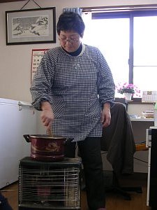| むいたマメはお母さんがストーブで炊いてくれました。 |