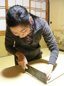 | お父さんの手さばきにみとれる参加者。 |