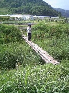 ![]() | 小さな手作りの橋を渡ってラフランス畑に向います |