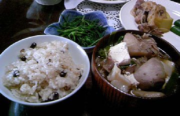 こちらは赤飯と芋煮とおかひじき |