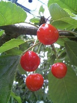 頂きました 冬の間に加温したハウスでは、早くも真っ赤な サクランボが実っています |
