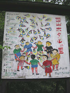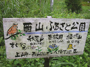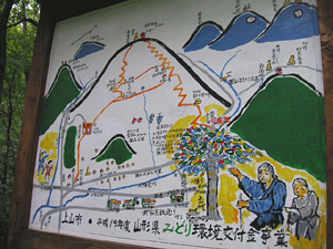 | 西山に行くには、武家屋敷通りがはじまるこの角を、山の方に進むとわかりやすいです。 (自称)上山観光大使の私としては、この西山地区の扱いにヒジョーに不満です。常々、観光地としての上山の問題は、雨の日にやることがない、昼間に温泉に入ったあとに行くところがない、ということだと思っていました。田舎時間のプログラムでも、日曜日にサイクリングを予定していて雨が降った場合、やることがなくて困っていました。 ハコモノではない、かみのやまならではの、楽しい場所がきっとあるんじゃないかと思ってましたが、かみのやま暦 7年目にして初めての発見。観光的に、この西山の素晴らしいところが、雨の日でも楽しいことと、温泉街からゆっくり歩いて所要2時間ぐらい、ということです。ちょうどいいわけですね。 西山地区はホタルで有名なのですが、ホタルといっても旬は一瞬なので、いままで行く機会がありませんでした。ホタルだけでなく、こんなにアートで素晴らしい場所を、もっと宣伝してもらいたい。少なくとも、かみのやま駅と旅館に温泉街からの散策マップぐらいは置くべきだと思います。それと、あの楽しいポスターの多くが雨で濡れて崩れてきてしまっているので、せめてカバーをつけてもらえれば。 いつか機会があれば、満月の夜に歩いて、ポスターの動物を見てみたいです。 |