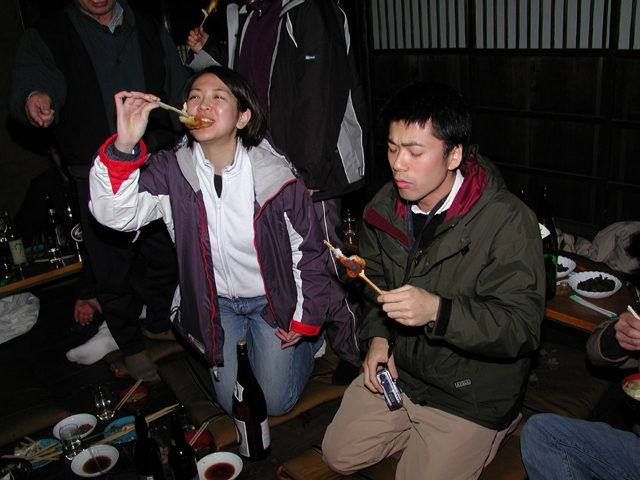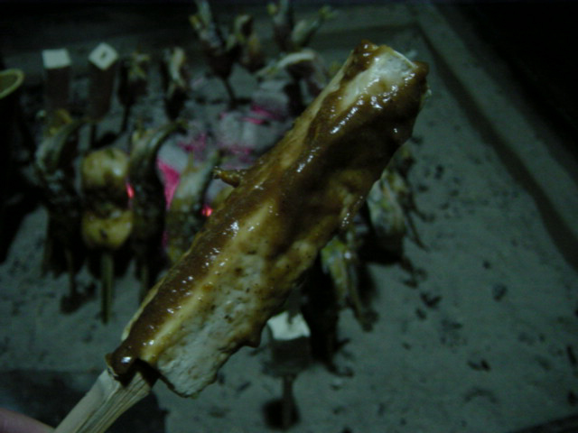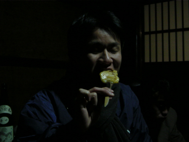 ![]() | 私は上山に来るのは去年から数えて6回目で、毎回おいしい食事を頂いていますが、それでも来る度に「うまい!」という新鮮な感動があります。 いろりで焼いた豆腐田楽。こんなの東京で2万円のレストラン行ったって絶対食べれません。 |