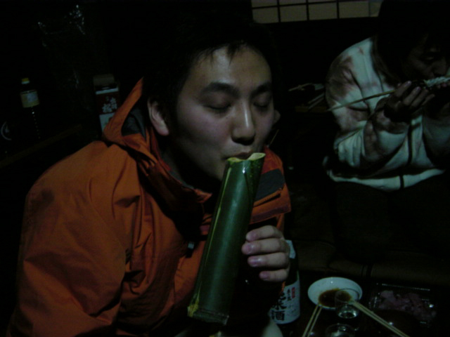 ![]() | 今日切った竹徳利を囲炉裏で熱燗にして呑んじゃうなんて信じられない。 |