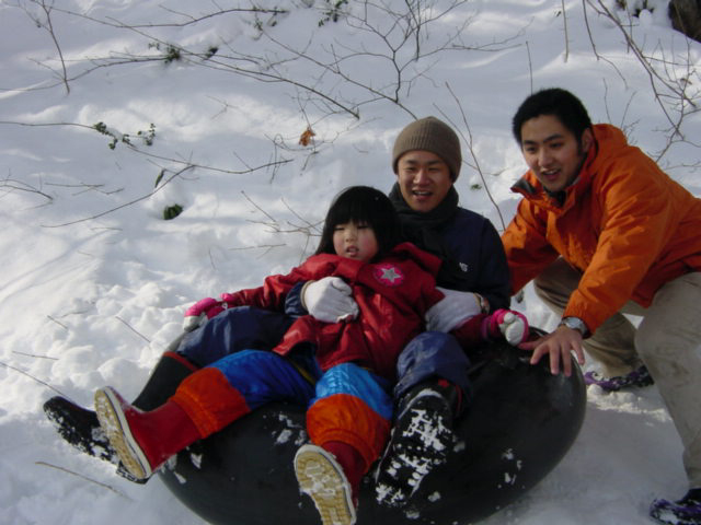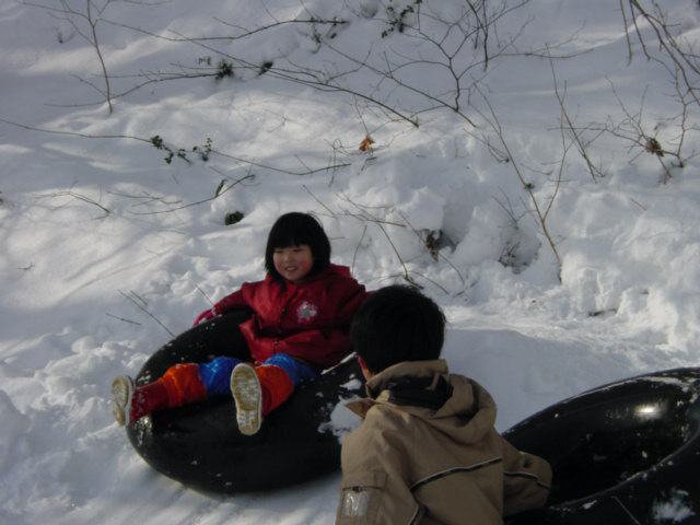 地元の子と一緒にまた雪すべり。