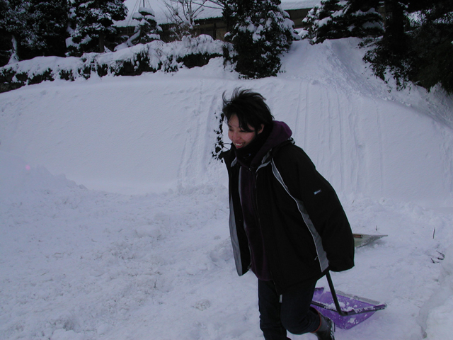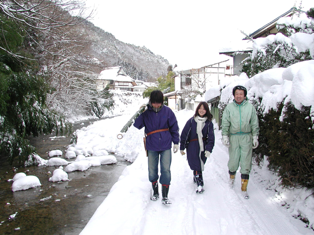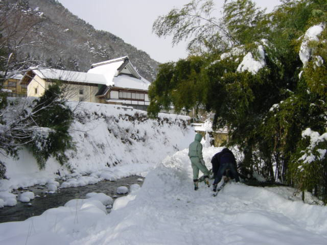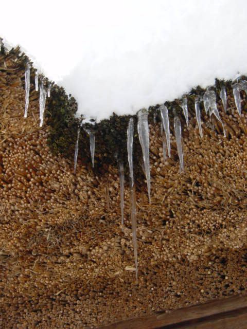 ![]() | 庄内屋の茅葺屋根につららができてました。 |