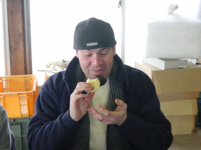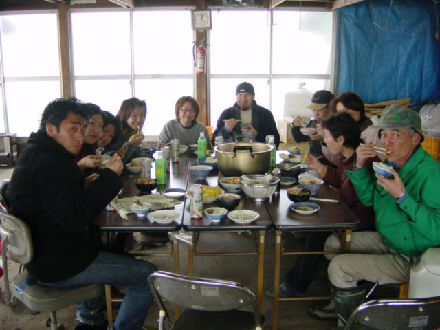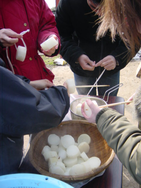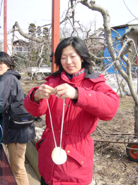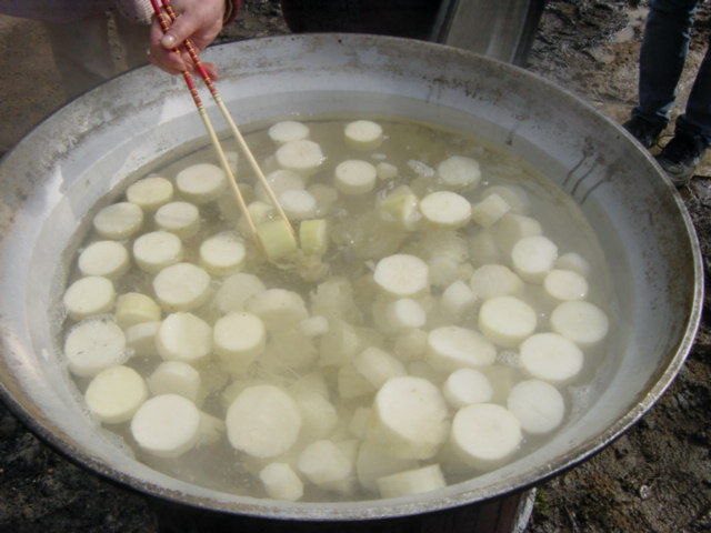 ![]() | お昼が終わったら、今度は大根干しです。さっき掘った大根をまず煮て、 |