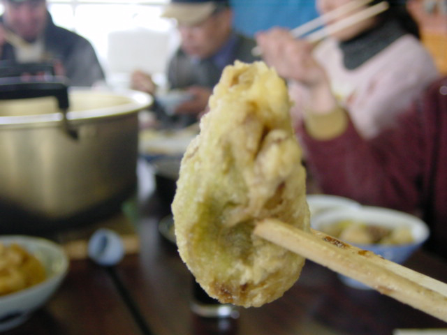 ![]() | これ、ふきのとうの天ぷらなんだけど、うーん、美味しそうに撮れてないのが残念。ほろ苦くてほやほやです。大人の味。すげーうまい。この時は腹一杯で1つしか食べれなかった事が極めて残念。 |