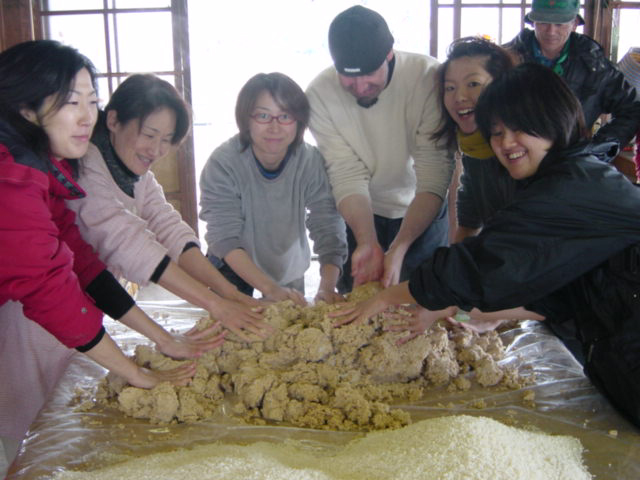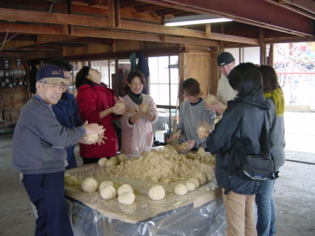 味噌づくりしながら豪華昼食準備 | ( 撮影・画像加工・文章・編集:貴山敬 ) |