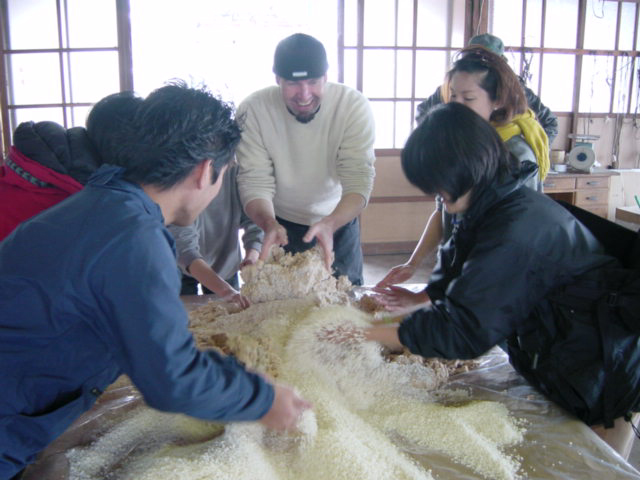 ![]() | あらかじめ混ぜておいた麹と塩を混ぜていきます。 |