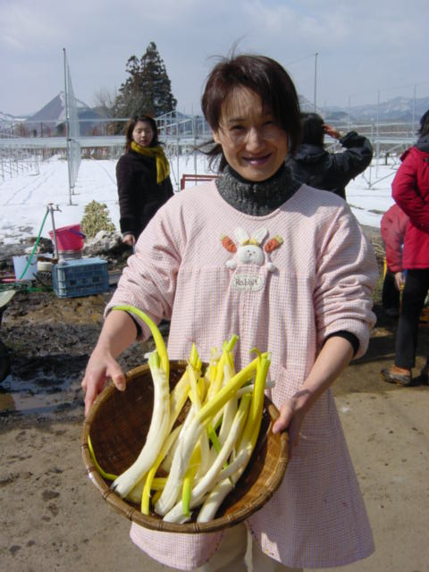 ![]() | とれたての長葱は綺麗ですね。毎回地元参加の増戸さんです。 |