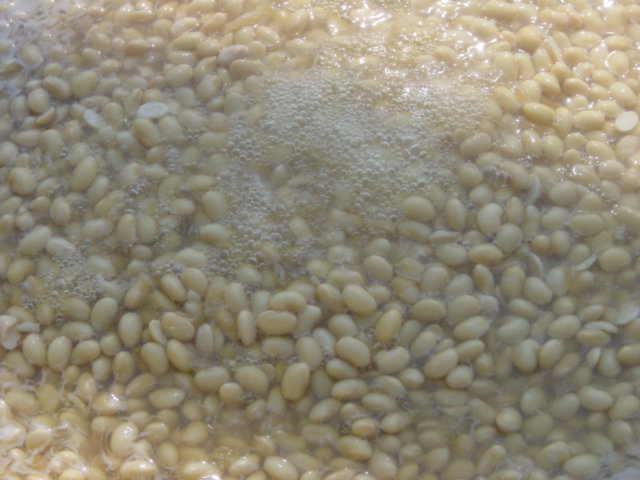![]() | さて、味噌用の大豆も煮えてきました。 |