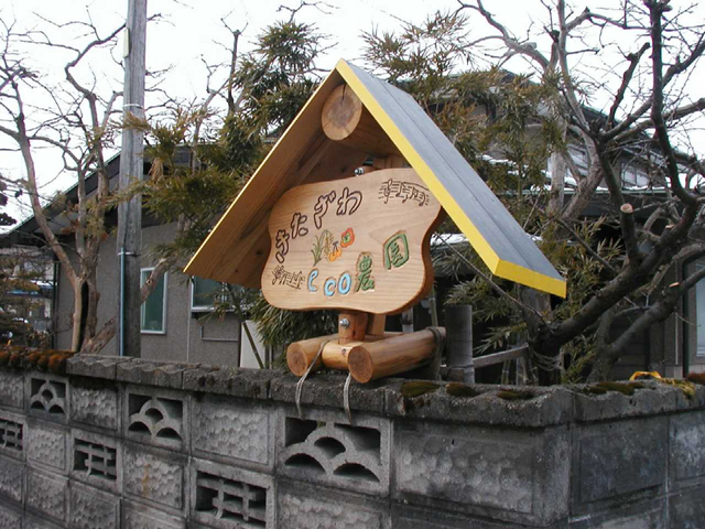 ![]() | 今回お世話になった北沢さん宅。手作りのかわいい看板がお出迎え。 |