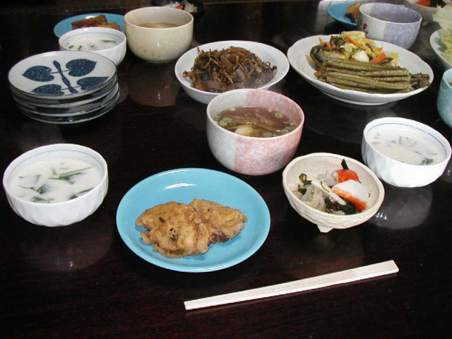 ![]() | 北沢さんのところでお昼をご馳走になりました。 採れたての野菜やたまご、搾りたてのミルクのシチュー、自家製の漬物や味噌。これをスローフードっていうんですね。ほんとに贅沢! |