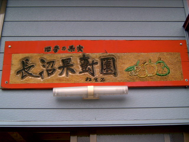 ![]() | 今回は、はにかんだ林檎、ちょっと澄ましたラ・フランス、離れたがらないサクランボ、毛むくじゃらのキィウィまでをも育まれている「四季の果実 長沼果樹園」におじゃまいたしました。こちらは長沼さんご自身が創られた、木彫りの深く力強いサインボード。 |