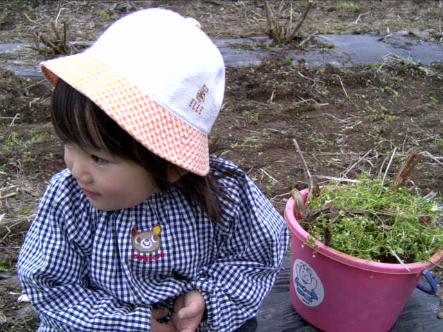 ![]() | 雑草のお葬式を手伝ってくれたユイちゃん。 |