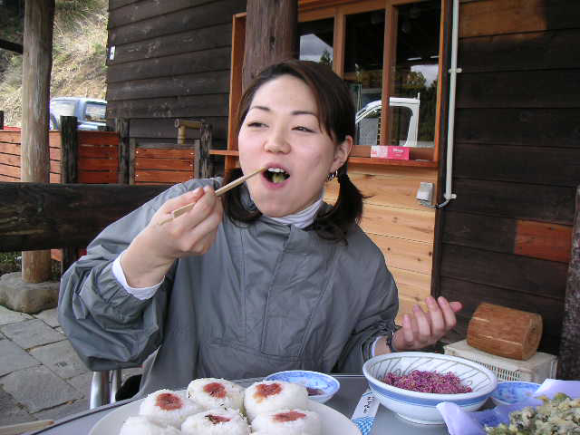 ![]() | おにぎりをモリモリ頂く参加者。 |