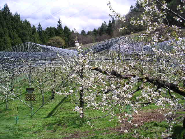 ![]() | 佐藤さんのさくらんぼ畑です。こちらの地名は姥懐(うばふところ)。なんともあたたかい名前ですね。佐藤さんの果樹園のホームページはこちら。http://www.ubafutokoro.com/ |